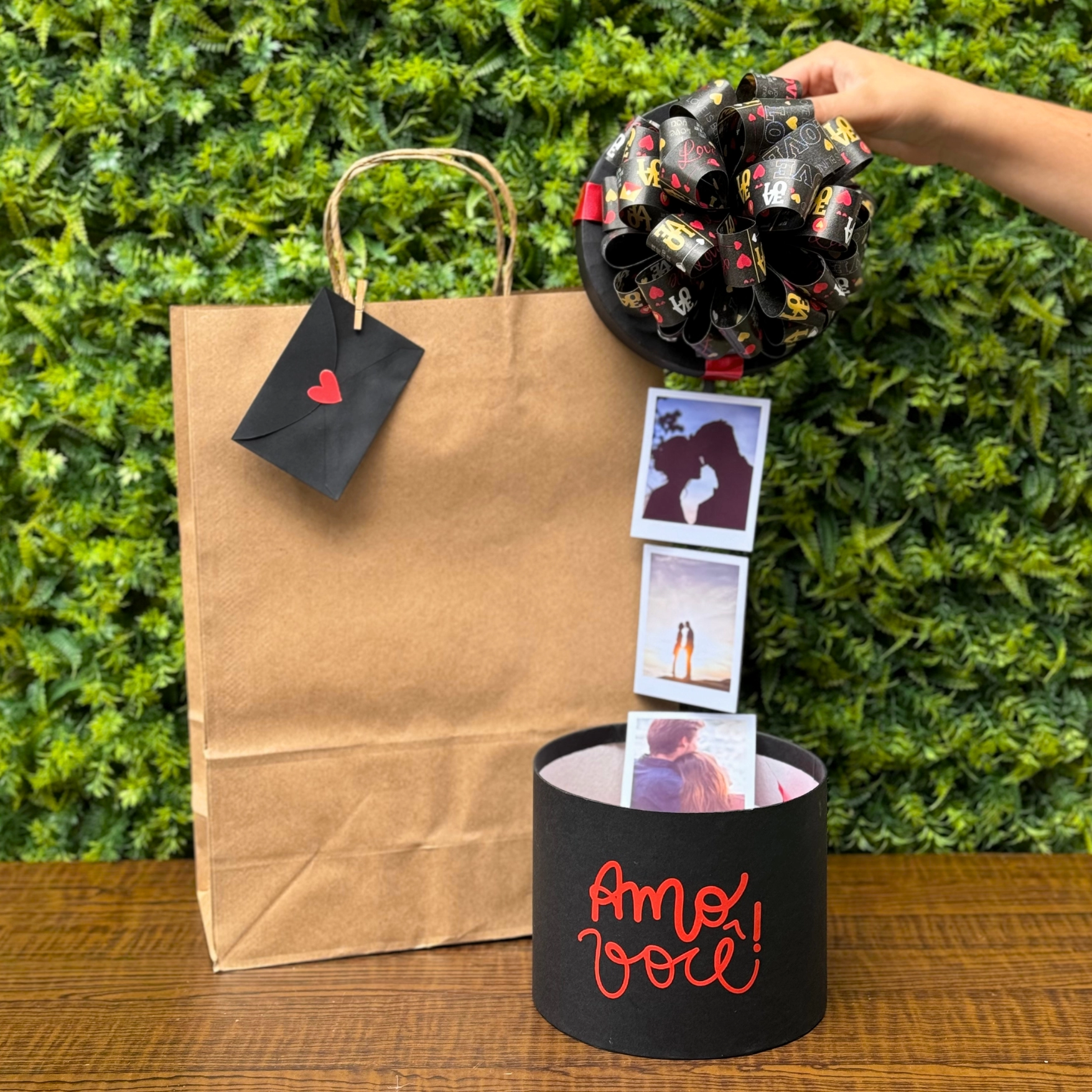 Encante o seu amor com a nossa Cesta Box Surpresa! Ideal para o Dia dos Namorados, esta caixa revela uma mágica surpresa: ao abrir a tampa, seis fotos especiais se elevam junto com a tampa e descobrirá deliciosos bombons.