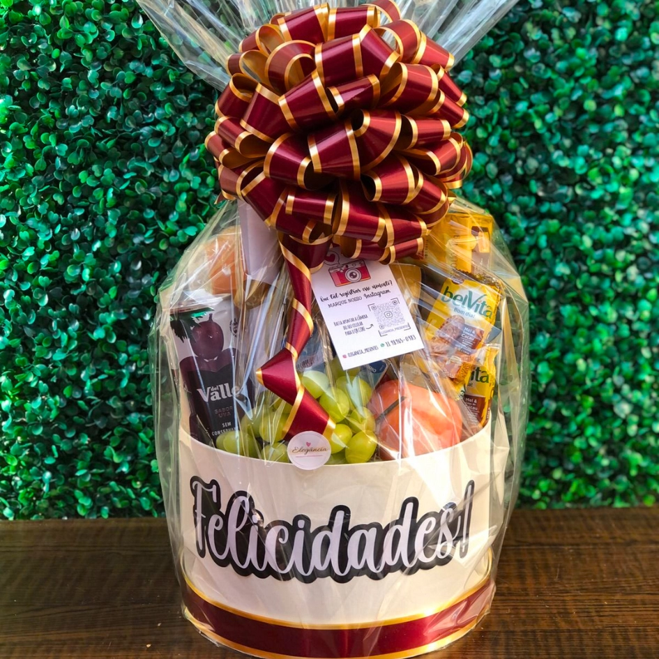 Parcele em até 3x sem juros Caixa Box Decorada Personalização 2 pães franceses Fios (presunto e queijo) Café solúvel 2 Polenguinhos Biscoitos Bel Vita Torrada Bauducco Suco Maçã Uvas