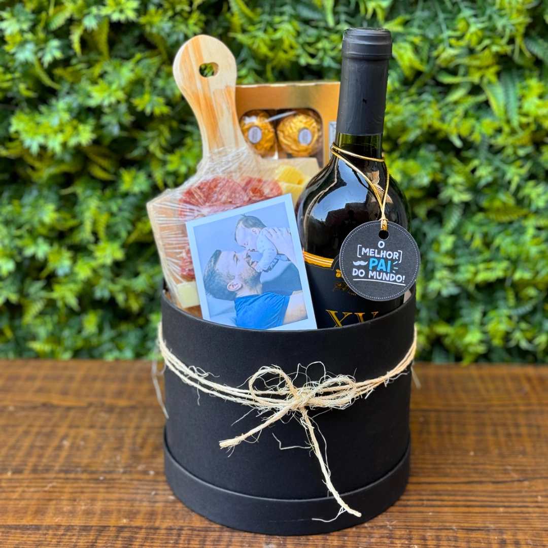 Box de Luxo Decorada Vinho XV de Novembro Tábua com frios Caixa de Ferrero Rocher Foto Polaroide O presente vai embalado e fechado com um lindo laço.